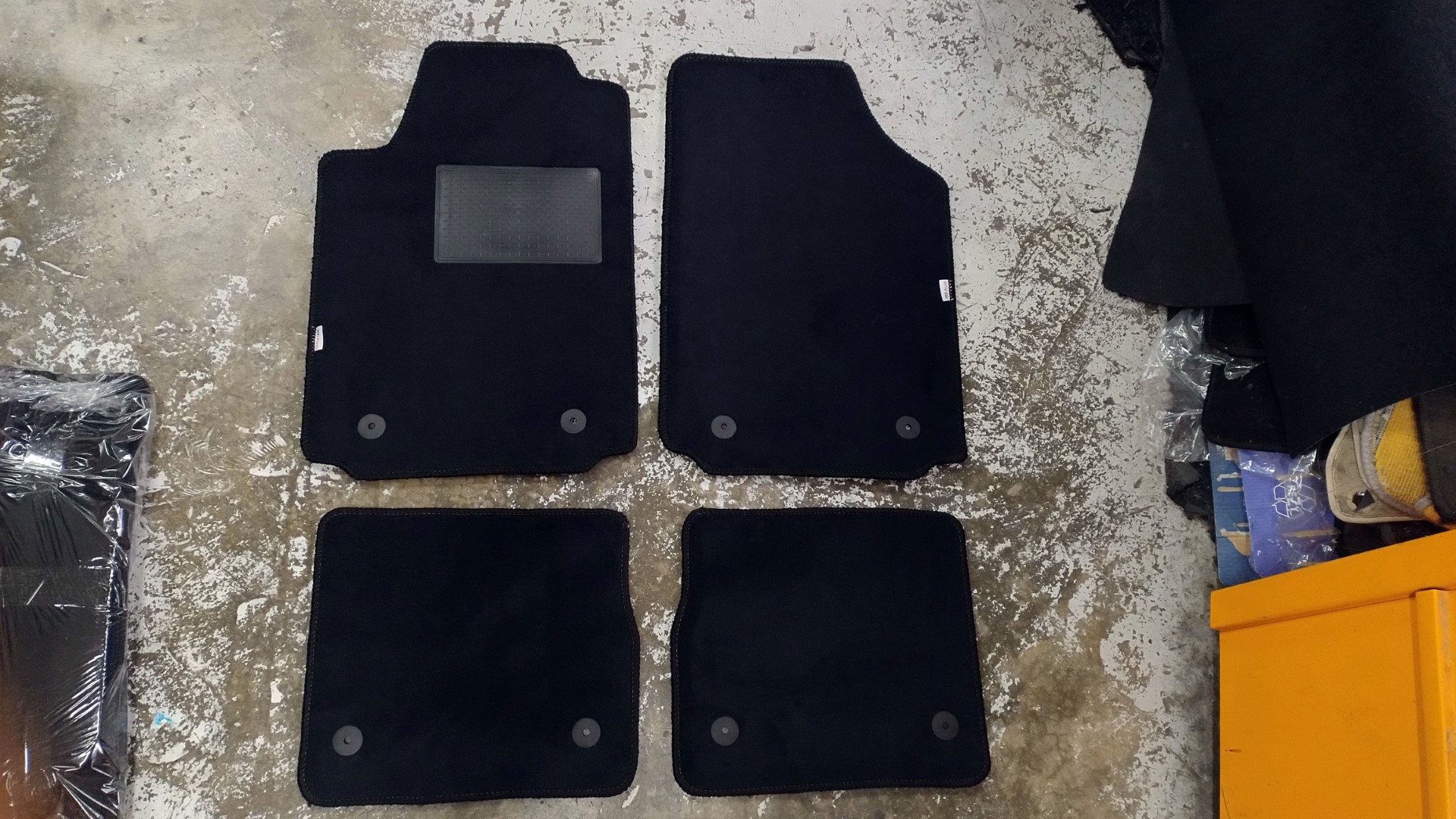 Feitos com carpete preta veludo de fácil limpeza.