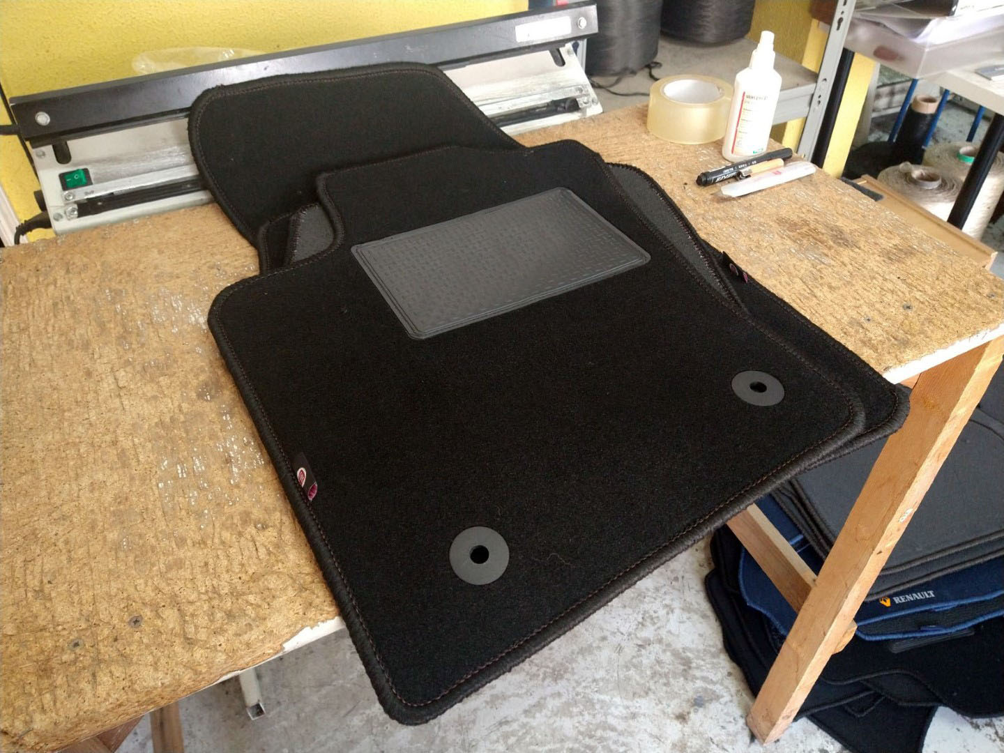 Feitos com carpete preta veludo de fácil limpeza.